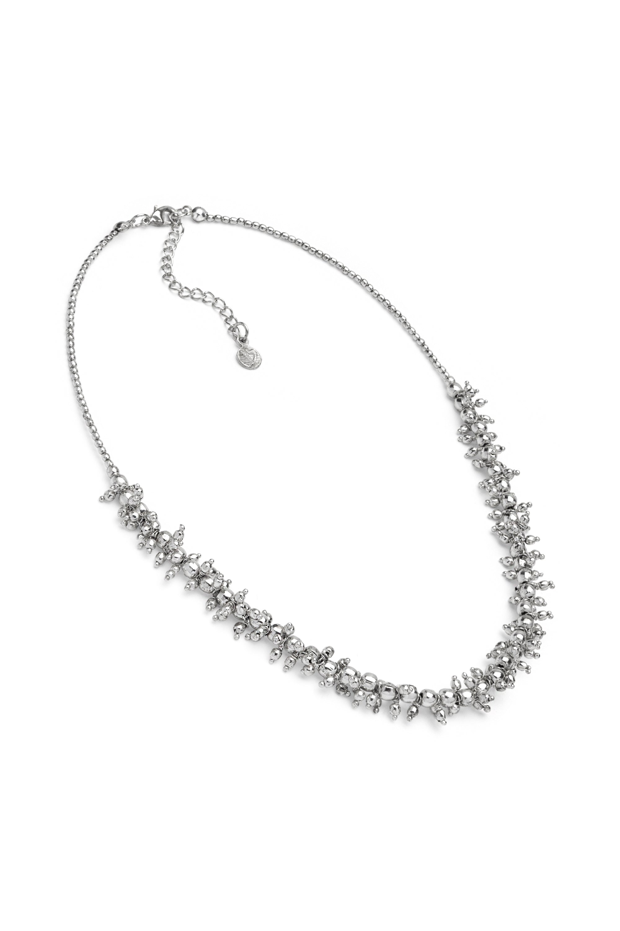 Elegancia entrelazada. Collar realizado con técnica mogra, trabajo manual inspirado en las tradiciones indias que compone pequeños racimos brillantes con perfil de jazmín en la parte frontal. Un diseño más ligero y delicado que la versión full, perfecto para el día a día como toque luminoso o combinado con otras cadenas para un layering personalizado. Cierre de mosquetón regulable. Baño de plata 100% artesanal. Nickel tested. Elaboración artesanal. Joyas hechas a mano, únicas y artesanales, perfectas para todos tus looks o como idea de regalo.