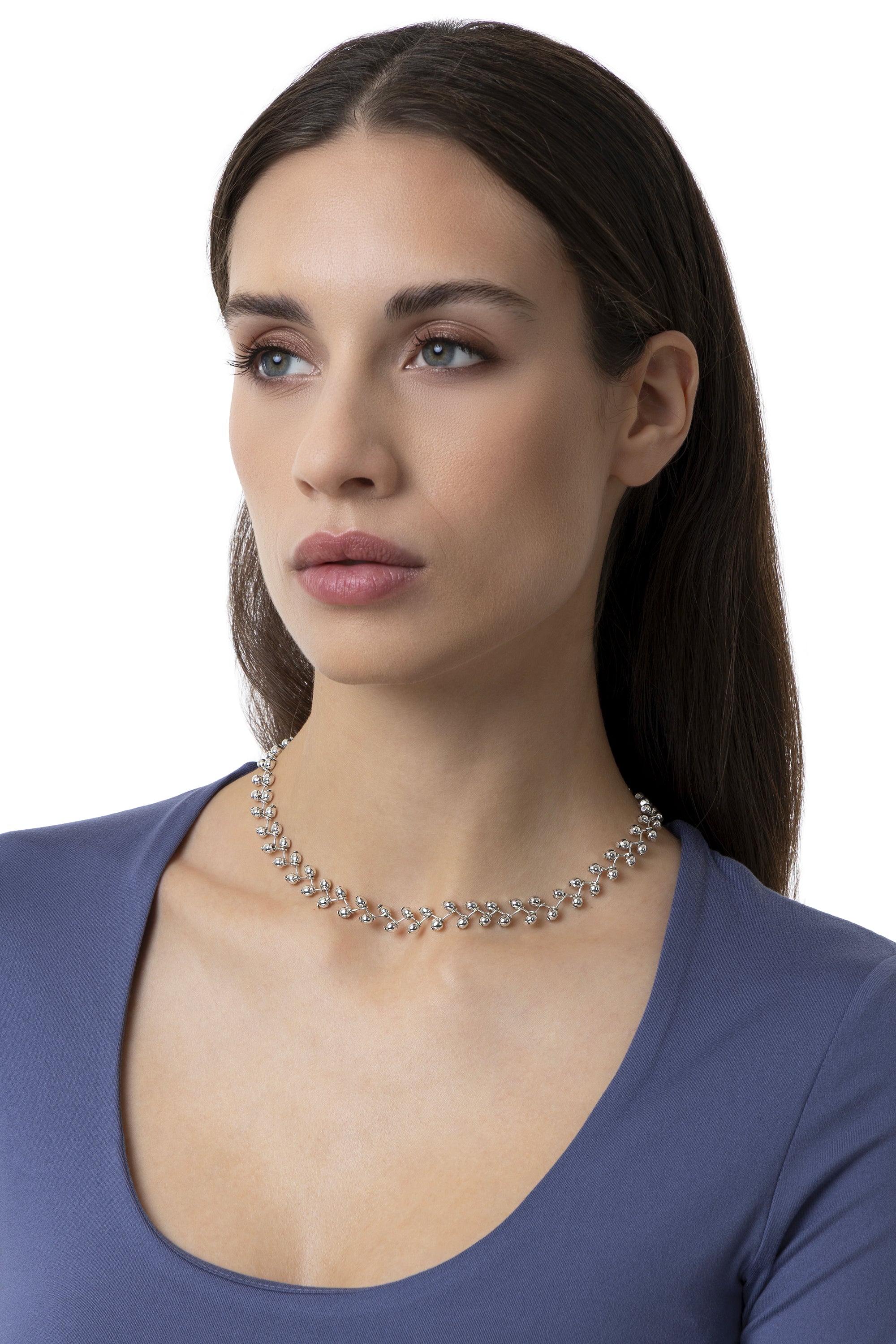Textura tridimensional y estilo contempor?neo. Este vers?til collar destaca por la disposici?n de las microesferas que crean un motivo particular a lo largo de toda la silueta de la joya. El dise?o crea un dinamismo visual moderno, lo que lo convierte en el accesorio perfecto para un look casual chic refinado, ideal para llevar solo o combinado con otras cadenas de la colecci?n. Ideal para combinar con los ?Pendientes Coraz?n Microesferas?. Longitud ajustable. Chapado en plata. Nickel tested.