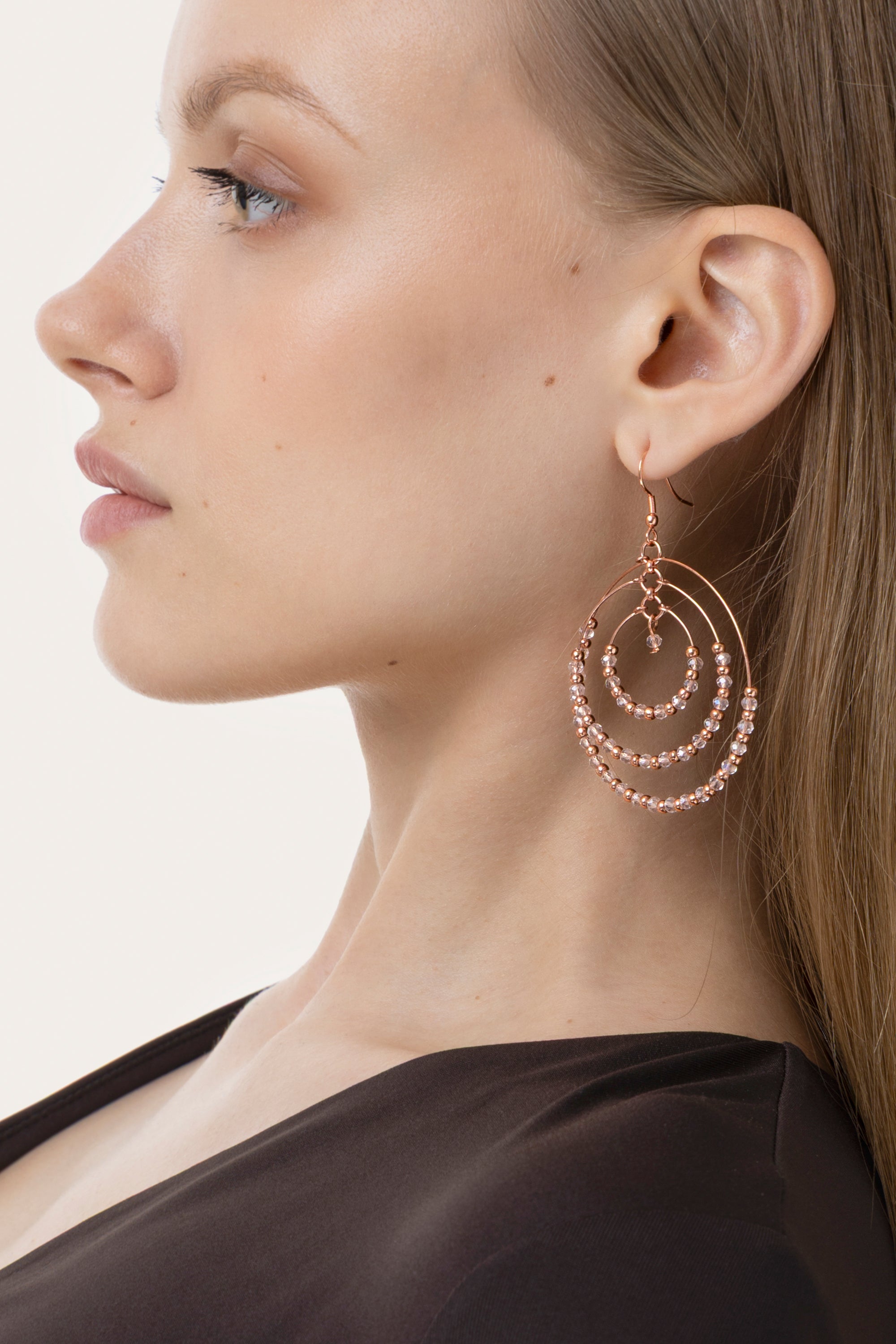 Pendientes de aro concéntricos y escenográficos. El estilo casual chic de estas joyas chapadas en cobre realza tus conjuntos con ligereza, perfectos sobre denim y prendas monocromas. Cierre de gancho. Diámetro 5 cm. Joyas hechas a mano, únicas y artesanales, perfectas para todos tus looks o como idea de regalo. Níquel testado.