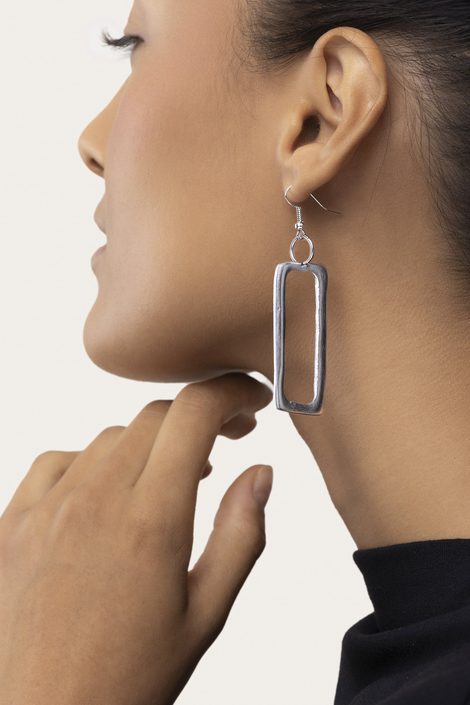 Pendientes colgantes en aluminio 100% reciclado con silueta rectangular, minimal y contemporánea. Una cascada de estilo para tus looks de cada día. Ligeros y cómodos gracias al cierre de gancho. Nickel tested. Elaboración artesanal. Joyas hechas a mano, únicas y artesanales, perfectas para todos tus looks o como idea de regalo.
