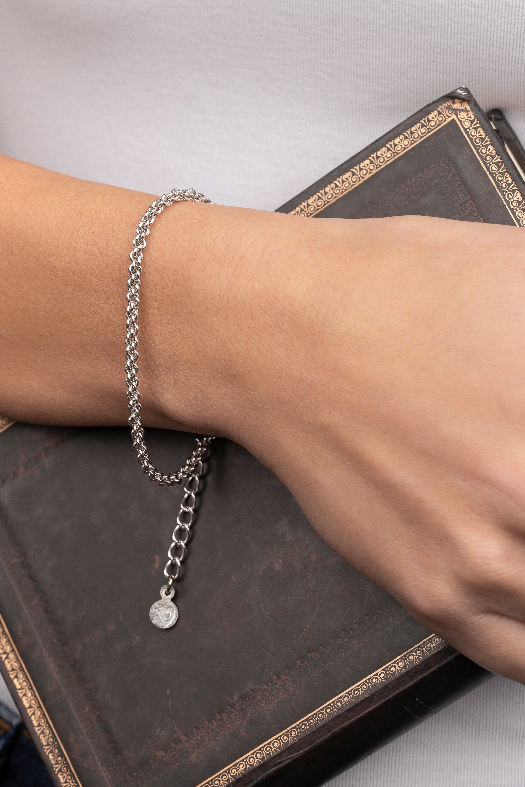 Minimal luminoso. Pulsera con cadena trenzada de reflejo denso y brillante: ideal para cada día y fácil de combinar con relojes y otras pulseras. Cierre de mosquetón regulable. Baño de plata 100% artesanal. Nickel tested. Elaboración artesanal. Joyas hechas a mano, únicas y artesanales, perfectas para todos tus looks o como idea de regalo.