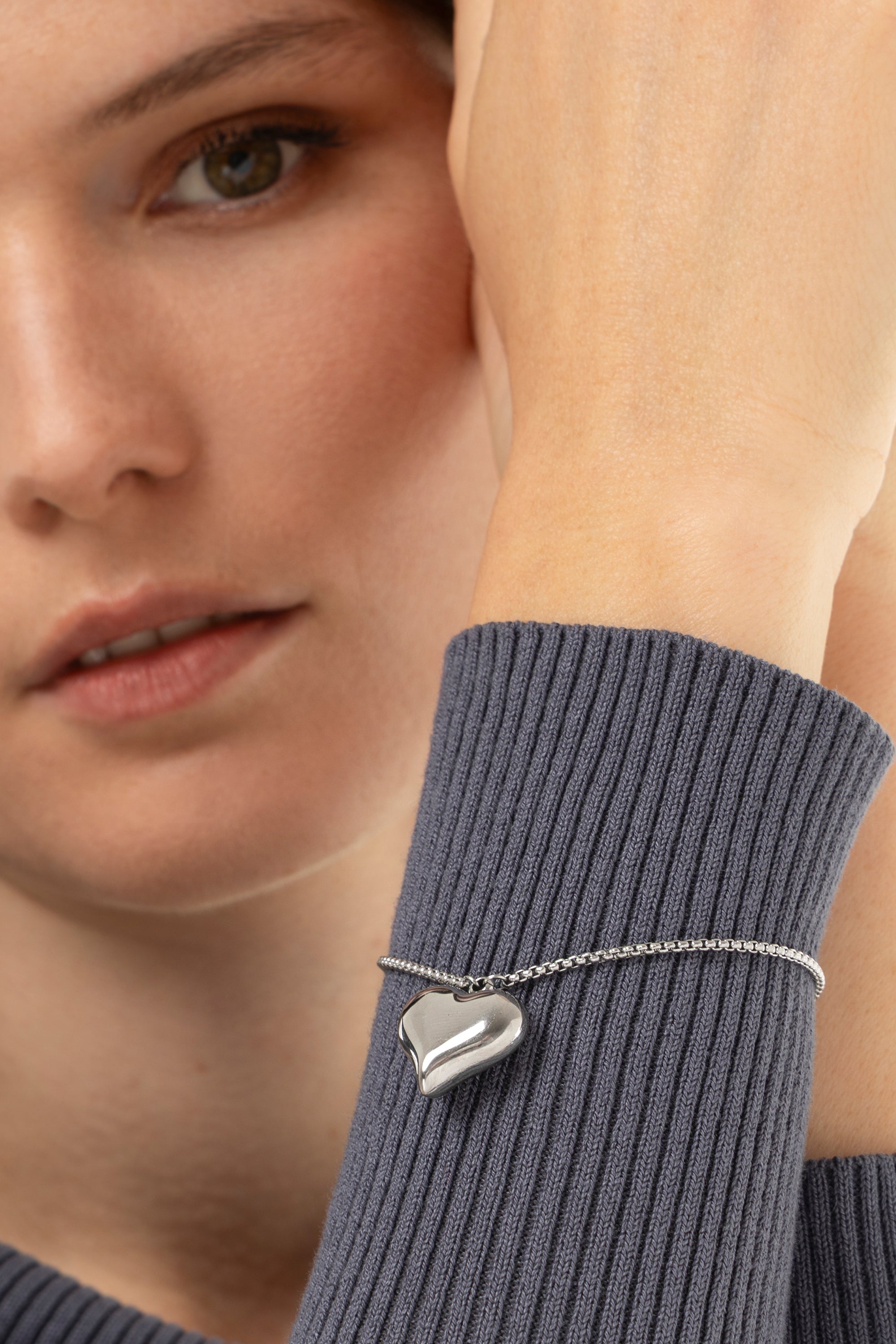 Un cuore maxi in acciaio smooth su catena regolabile: il bracciale perfetto per chi ama un mix tra romanticismo e statement look. Indossalo da solo per un dettaglio bold o con altri bracciali per uno stack. Materiale: acciaio inossidabile. Nickel tested. Lavorazione artigianale. Gioielli fatti a mano, unici e artigianali, perfetti per tutti i tuoi look o come idea regalo.