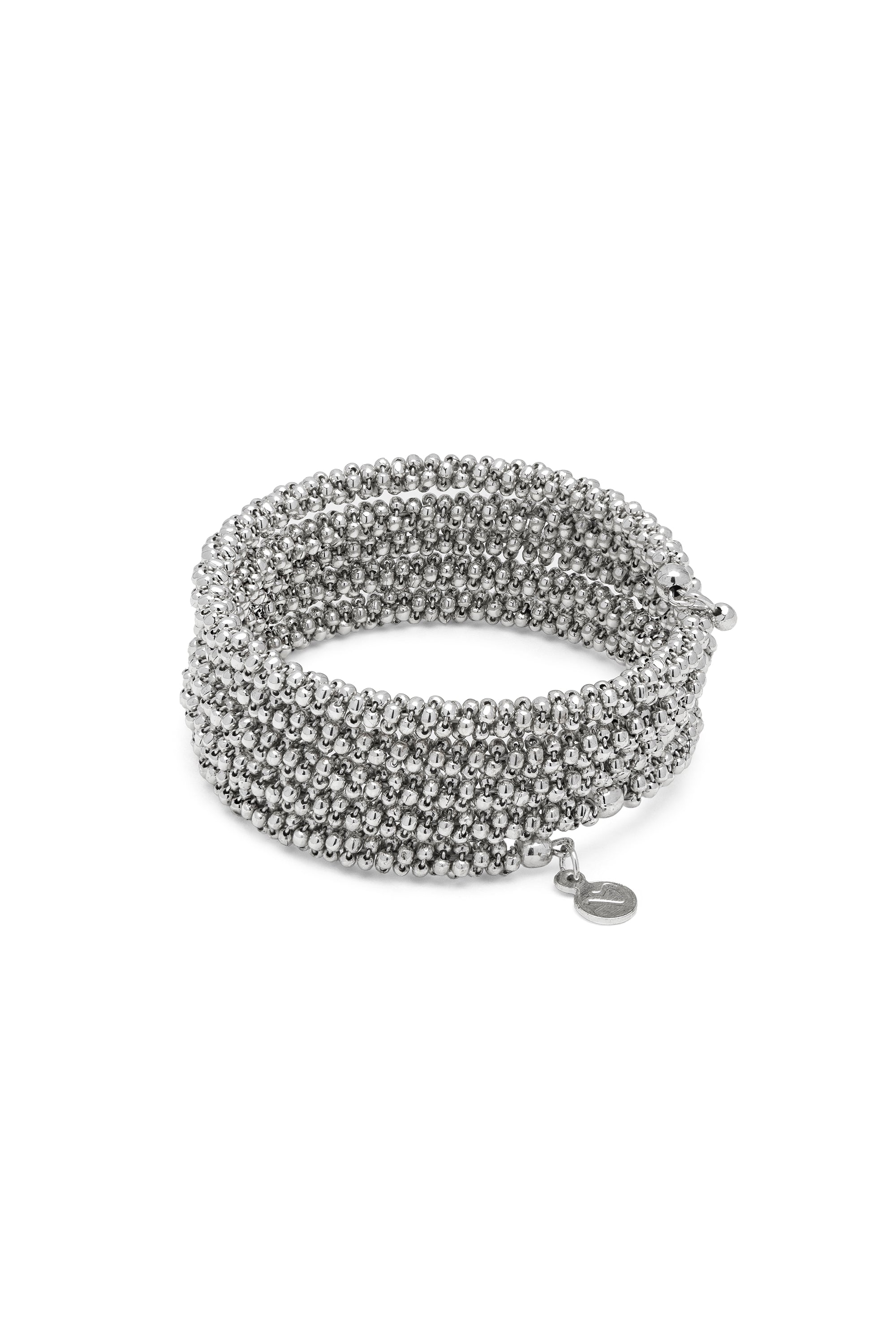 La bellezza è nei dettagli. Il bracciale molla sfere è un tribudio di dettagli brillanti e design artigianale. Luminoso, vibrante e iconico, avvolge il polso per un effetto glam e contemporaneo. Materiale: placcatura argento 100% artigianale. Nickel tested. Lavorazione artigianale. Gioielli fatti a mano, unici e artigianali, perfetti per tutti i tuoi look o come idea regalo.