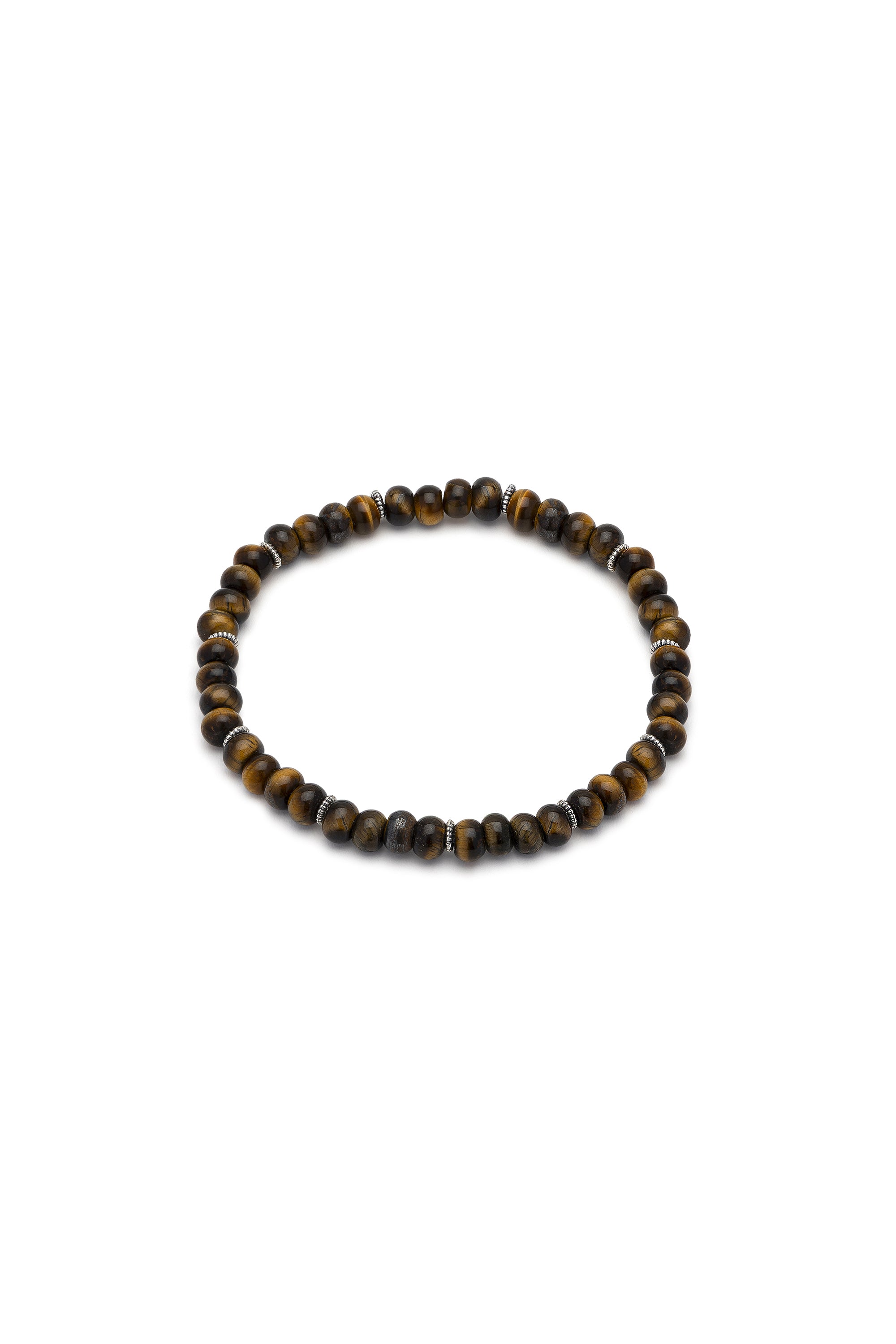 Bracciale elastico realizzato in occhio di tigre con base placcata in argento. Lavorazione artigianale. Nickel tested.