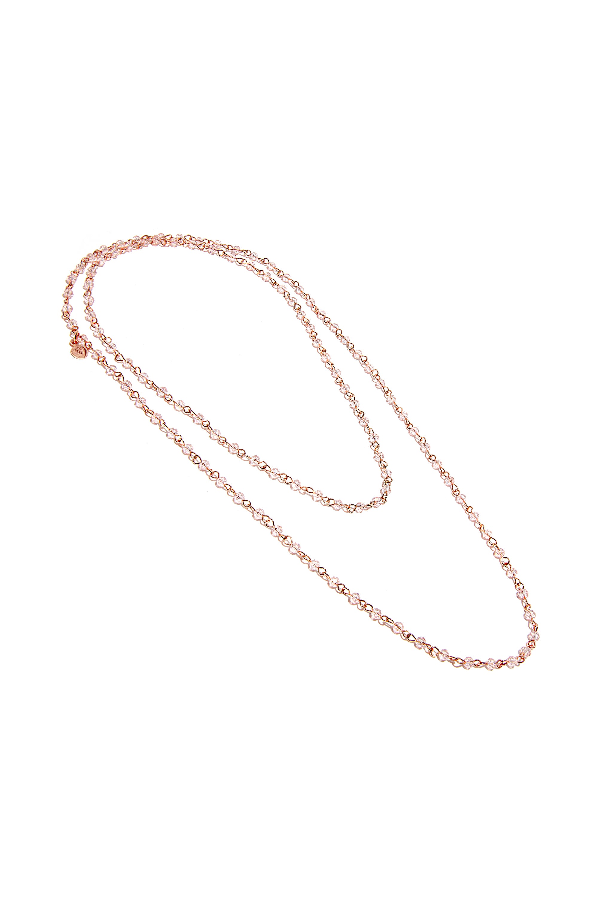 Collana lunga copper plated con piccoli cristalli di vetro rosa cipria diamond cut montati lungo la catena per un effetto leggero e continuo. Ideale da portare doppia o in layering. Chiusura: moschettone regolabile con catenella di estensione. Nickel tested. Lavorazione artigianale. Gioielli fatti a mano, unici e artigianali, perfetti per tutti i tuoi look o come idea regalo. Nickel tested.