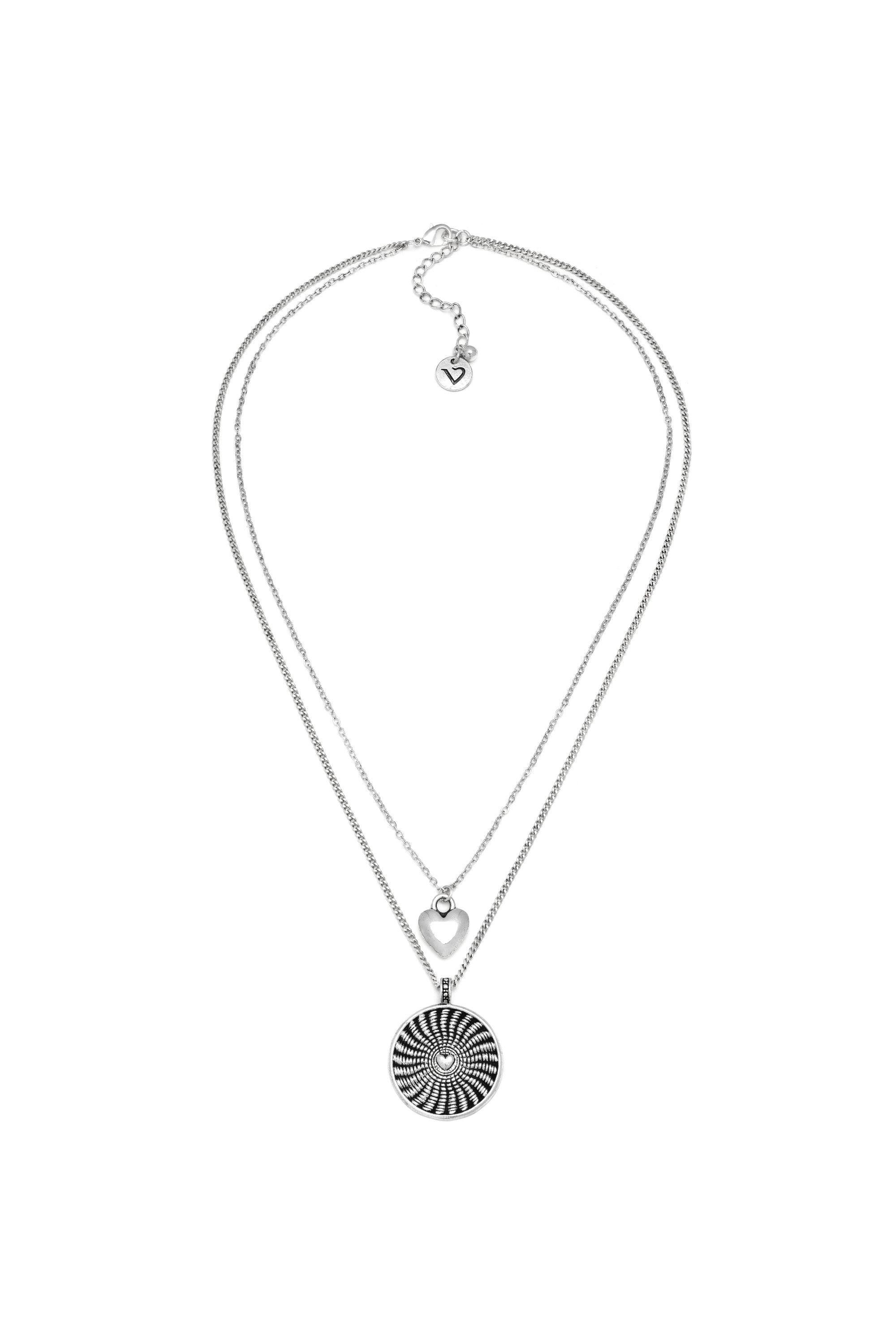 Layering effortless con doppia catena sottile e charm mixati: un cuore lucido e una coin decorativa. Una collana versatile e di tendenza, pensata per styling contemporanei per un effetto layering. Lunghezza catene 40 cm - 45 cm. Lunghezza extra chain 4 cm. Materiale: placcatura argento 100% artigianale. Nickel tested. Lavorazione artigianale. Gioielli fatti a mano, unici e artigianali, perfetti per tutti i tuoi look o come idea regalo.