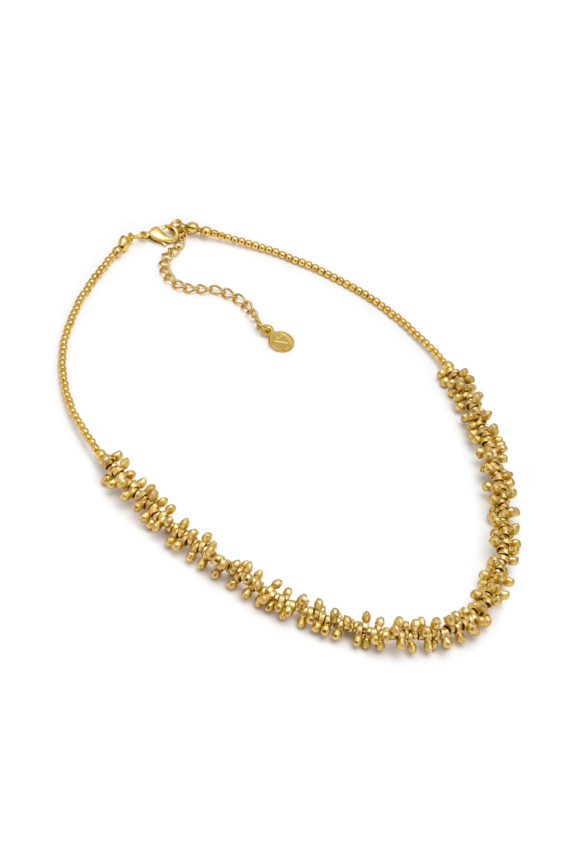 Collana in ottone riciclato ispirata ai delicati petali del fiore di mogra. Le forme leggere e il design floreale trasmettono femminilità e naturalezza con un tocco romantico e dorato. I micro elementi brillanti racchiudono l’animo artigianale della collezione, realizzata completamente a mano. Chiusura regolabile con moschettone. Lunghezza collana 52 cm. Lunghezza extra chain 6,5 cm. Nickel tested. Gioielli fatti a mano, unici e artigianali, perfetti per tutti i tuoi look o come idea regalo.