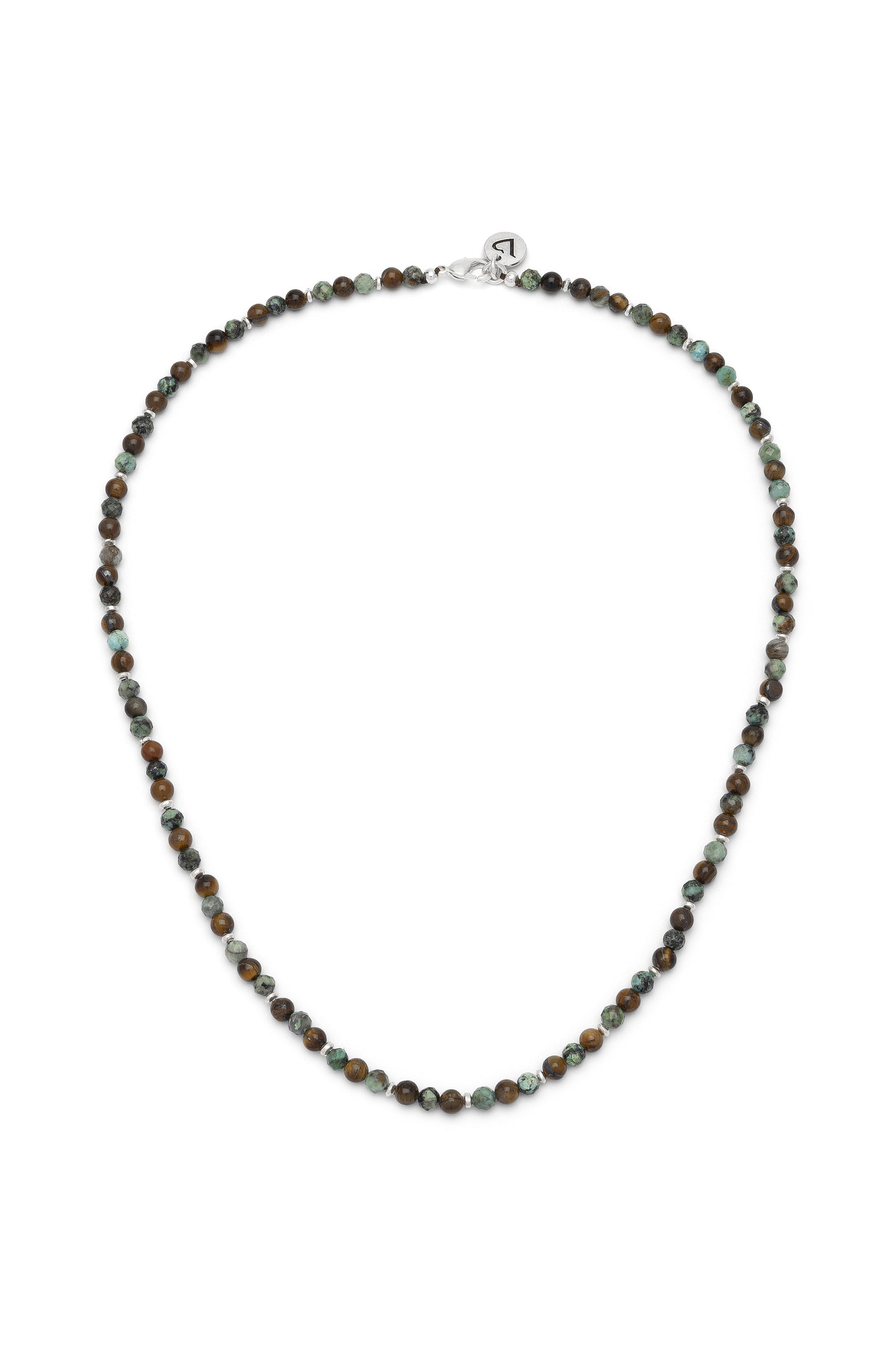 La collezione Man è pensata per ogni stile, dal wild al casual, dall’elegante all'urban. Gioielli artigianali placcati in argento, con pietre naturali (ematite, agata, apatite e occhio di tigre) in pelle o in legno aggiungono personalità a ogni outfit. L'acciaio è simbolo di resilienza e carattere. La conchiglia e il cotone completano la collezione con varianti più fresche senza compromessi.