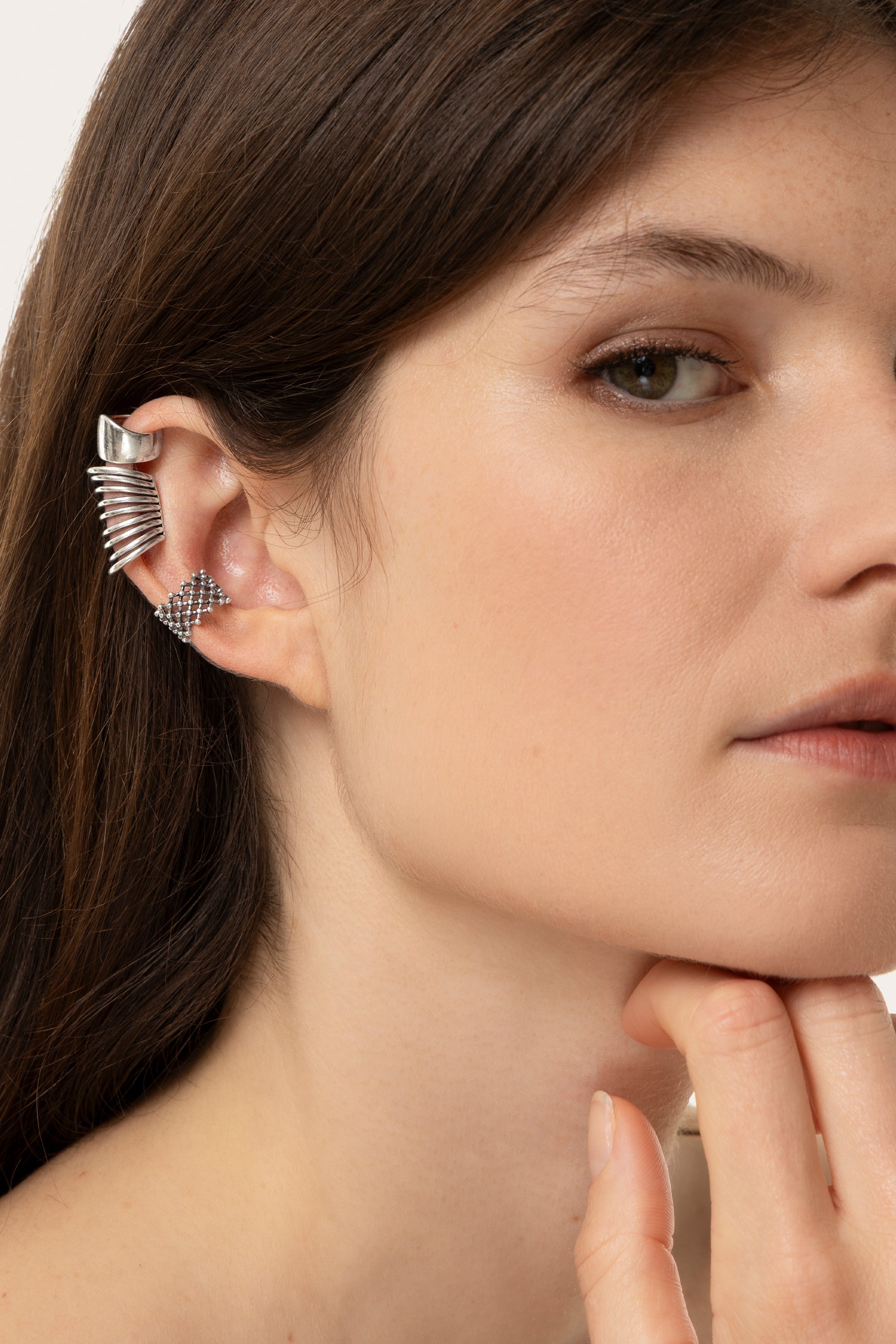 Un ear cuff iconico indossabile anche senza buco. Ear cuff multifili che avvolge l’orecchio con un effetto scultoreo e contemporaneo. Perfetto per completare look urban chic o come statement piece in abbinamento a piccoli orecchini a lobo. Crea il tuo earrings stack aggiungendo orecchini pendenti o cerchi al tuo jewelry look. Placcatura argento 100% artigianale. Nickel tested. Lavorazione artigianale. Gioielli fatti a mano, unici e artigianali, perfetti per tutti i tuoi look o come idea regalo.