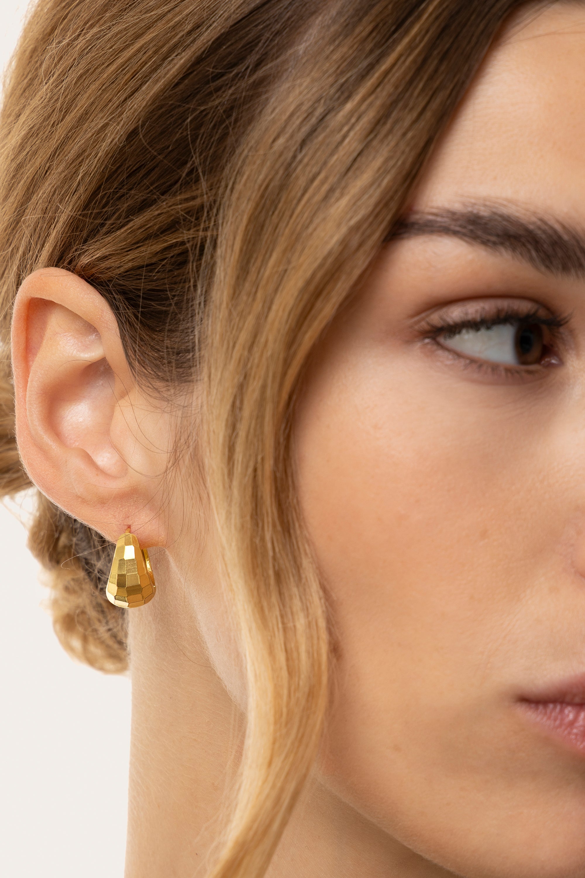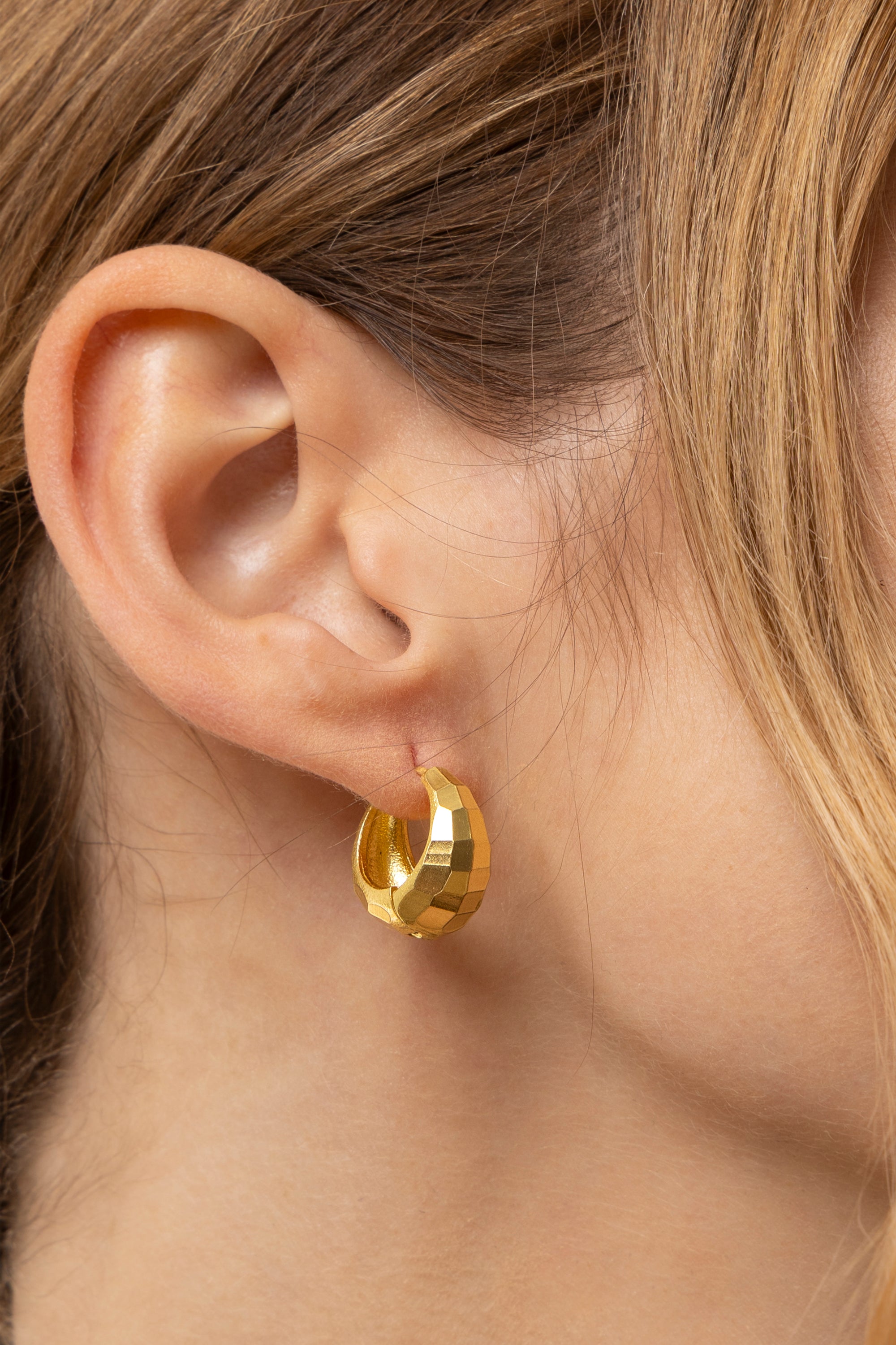 Un mondo di stile in un piccolo gioiello. Orecchini a cerchio in ottone riciclato con superficie martellata, dall’effetto luminoso e sofisticato. La texture sfaccettata cattura la luce a ogni movimento, per un tocco di eleganza discreta ma decisa. Chiusura a scomparsa, perfetti per un indosso pratico e quotidiano. Diametro 1,5 cm. Nickel tested. Lavorazione artigianale. Gioielli fatti a mano, unici e artigianali, perfetti per tutti i tuoi look o come idea regalo.