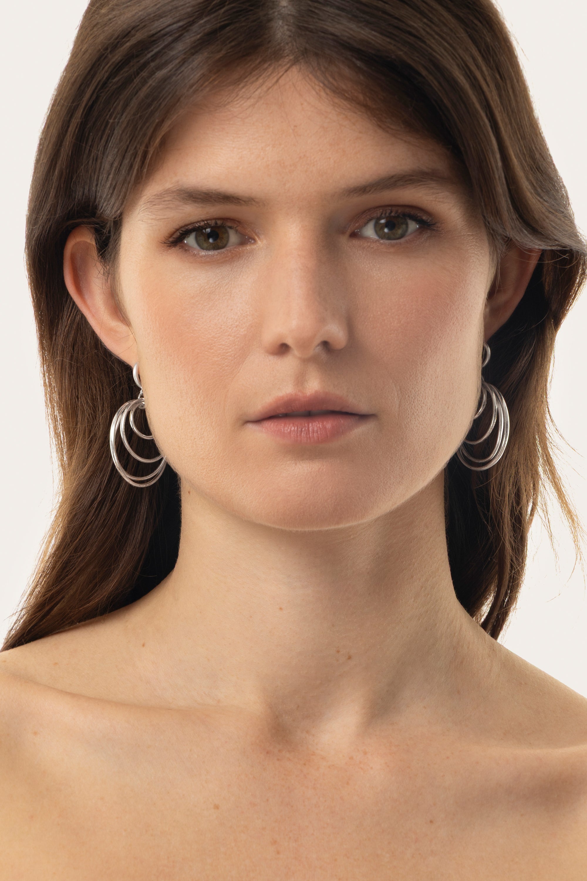 Geometrie in movimento. Orecchini pendenti con cerchi concentrici che creano giochi di riflessi dinamici e moderni. Da indossare come statement piece con outfit eleganti o per impreziosire un look casual chic. Chiusura a scomparsa. Placcatura argento 100% artigianale. Nickel tested. Lavorazione artigianale. Gioielli fatti a mano, unici e artigianali, perfetti per tutti i tuoi look o come idea regalo.