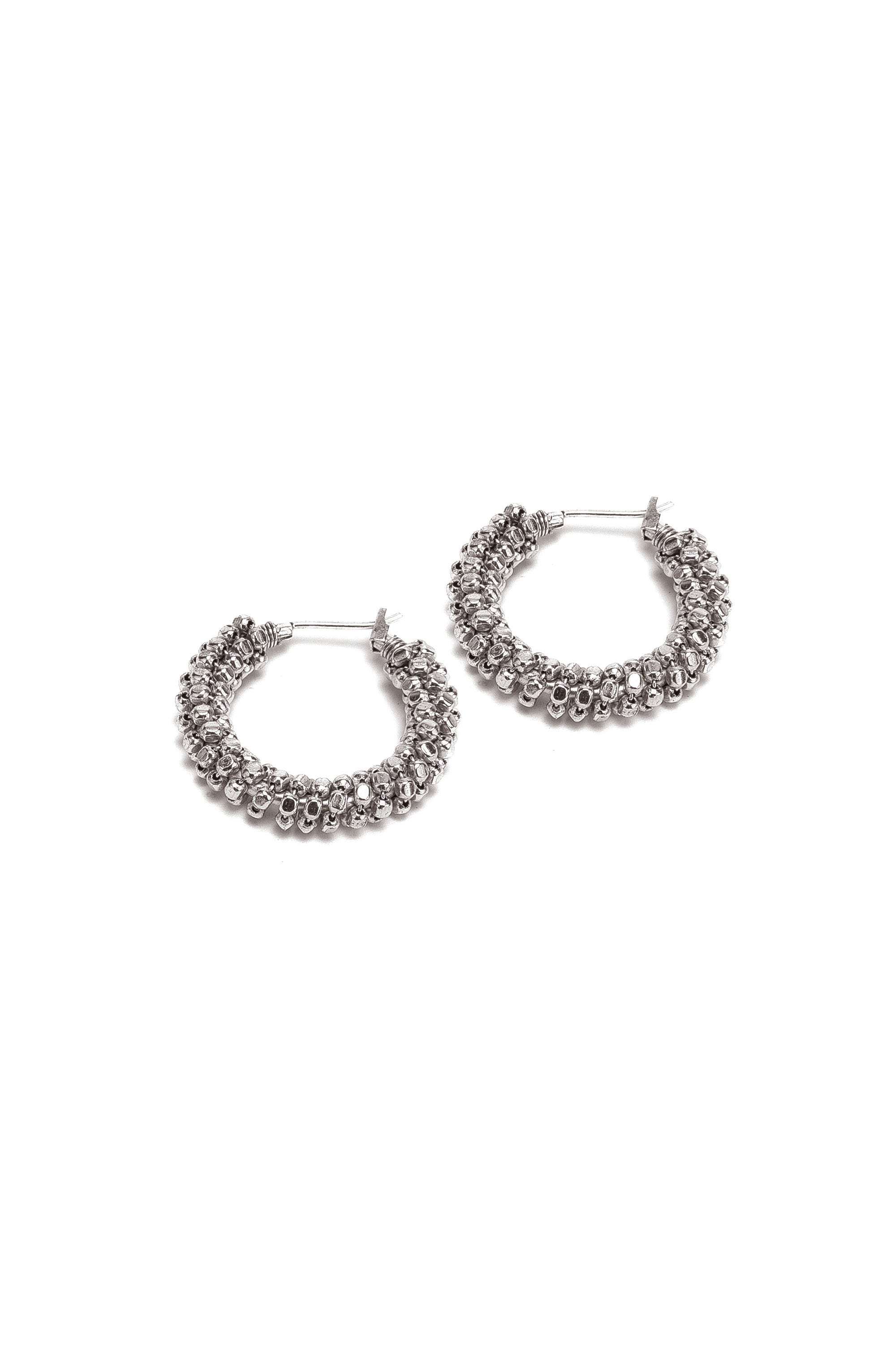 Iconici cerchi rivestiti da piccoli cluster intrecciati per un effetto ricco everyday: perfetti con chignon o onde morbide e in abbinamento alle collane mogra. Chiusura a baionetta. Placcatura argento 100% artigianale. Nickel tested. Lavorazione artigianale. Gioielli fatti a mano, unici e artigianali, perfetti per tutti i tuoi look o come idea regalo.