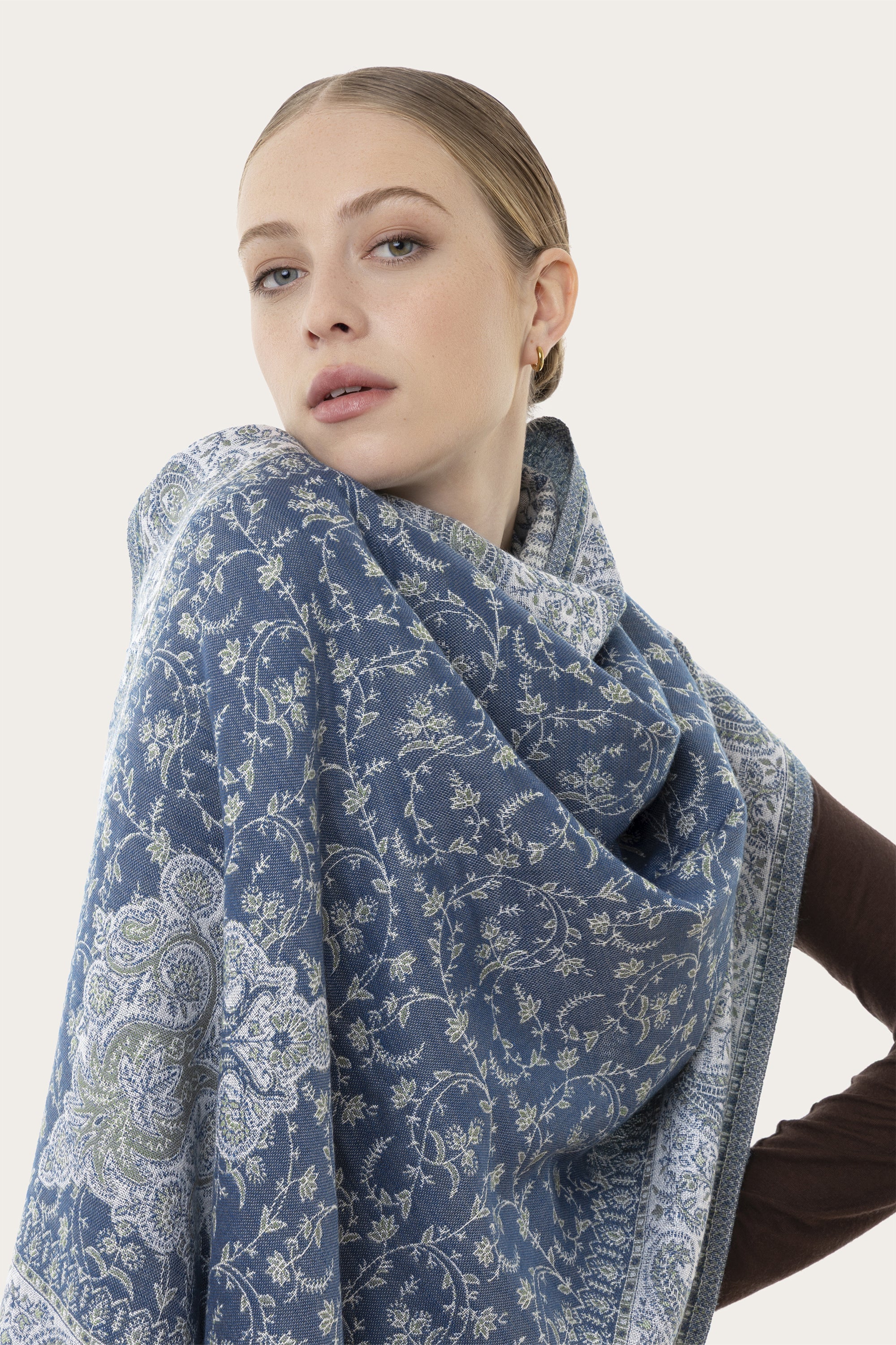 La collezione di sciarpe è caratterizzata da uno stile contemporaneo: floreali, cieli stellati e grafismi nei toni del blu notte e del nero petrolio, accanto a monocolore e geometrici senza tempo. Avvolgenti e morbide, sono i must-have da borsa che elevano all’istante il look, aggiungendo texture e luce a blazer, cappotti e maglieria. La collezione include modelli in cotone, seta, lana e modal.